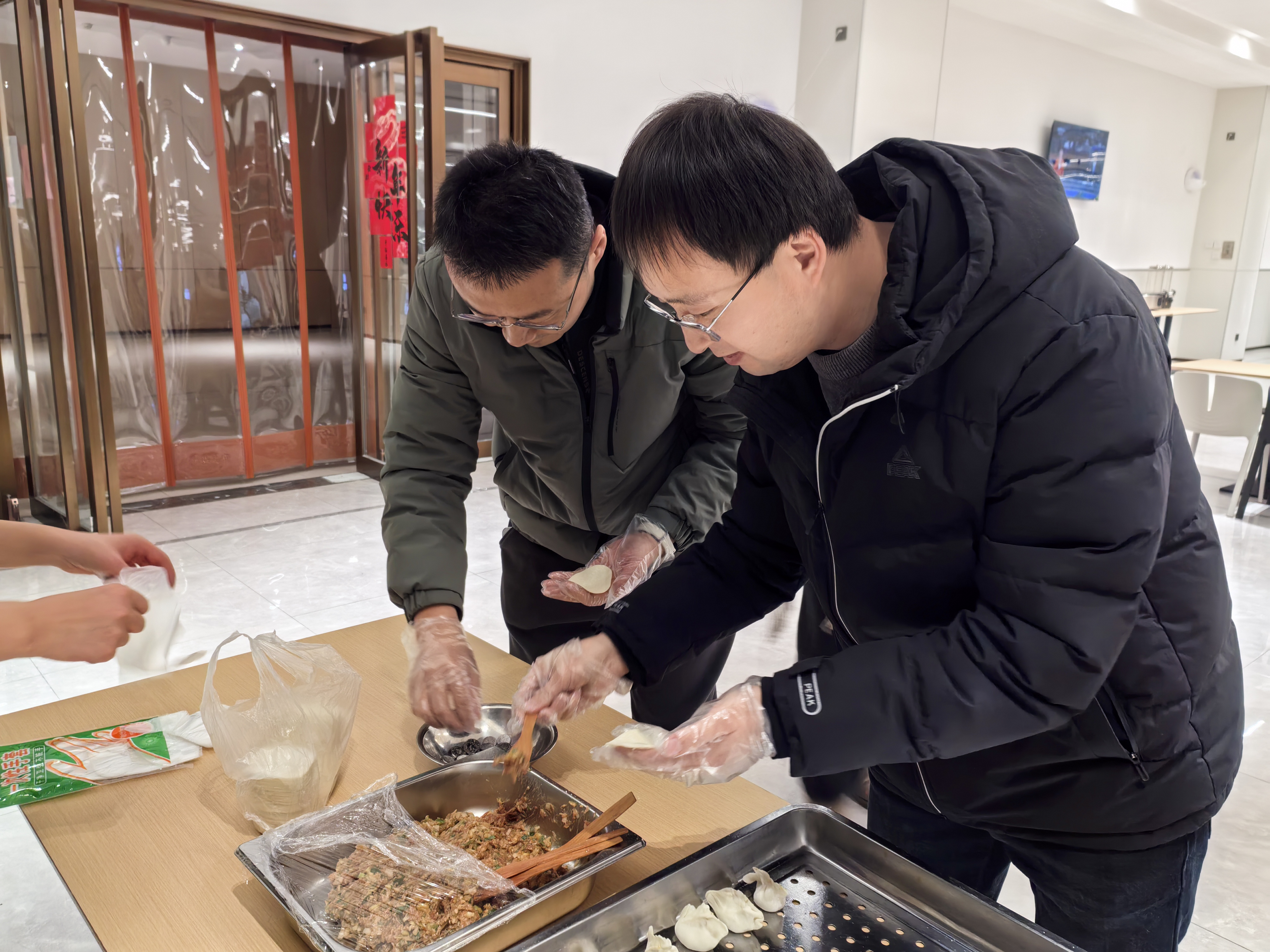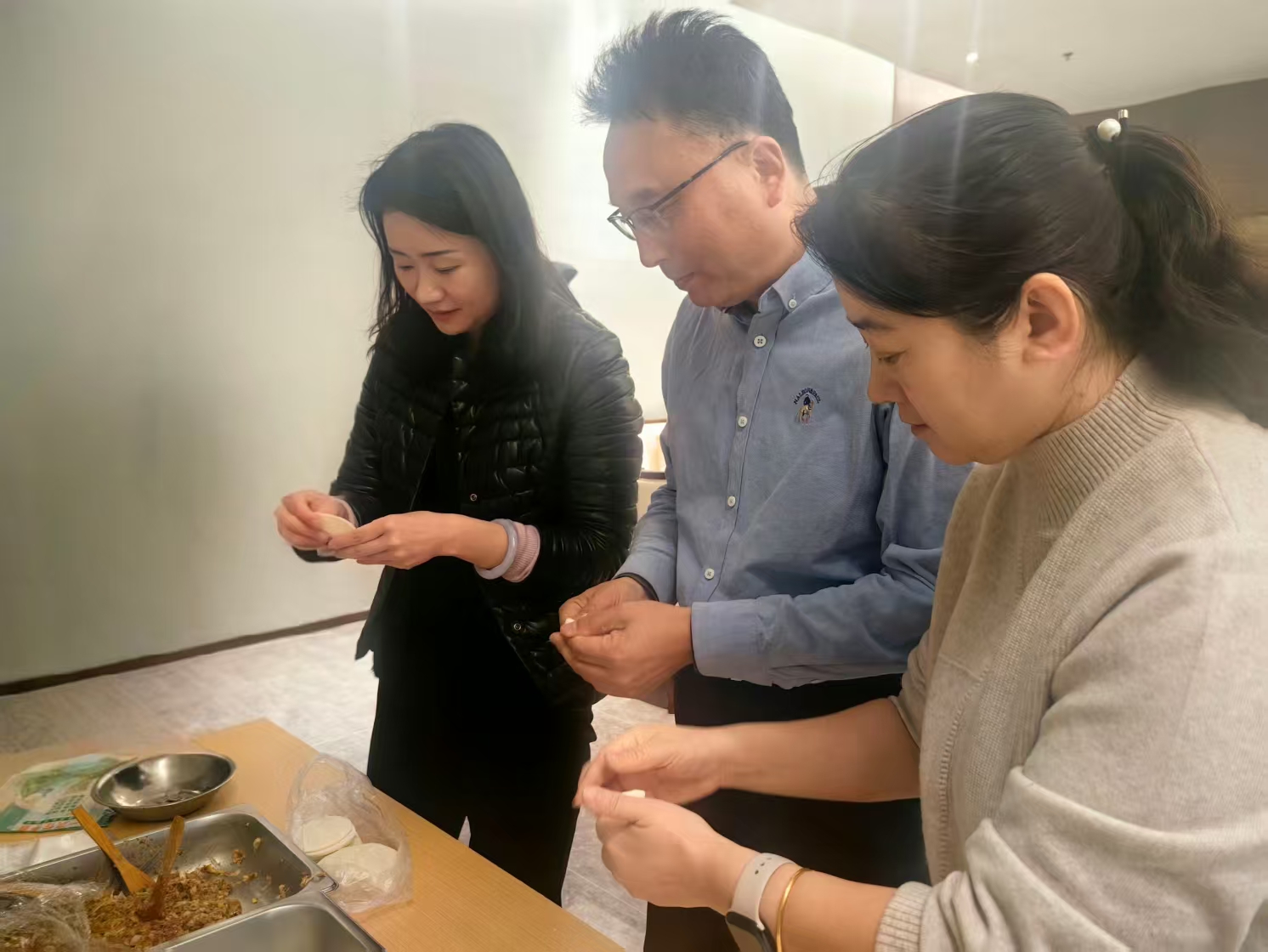 大家紛紛擼起袖子、大展身手,忙得不亦樂乎,在切磋包餃子技藝的同時,也分享著日常趣事和新年祝福,營造出喜慶祥和的節日氣氛。