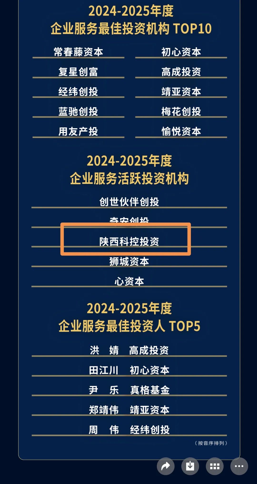 以本次獲評行業榮譽為契機,陜西科控投資將繼續秉持長期投資理念和未來價值投資,充分發揮平臺資源能力和服務經驗,聚焦國家重大科技需求前沿和陜西省重點產業鏈,以股權投資和科技服務等多措并舉,全力推動更多科技企業登高升規邁向資本市場,為助力國家創新驅動發展戰略的實施和陜西科技強省的建設培育更多新質生產力。